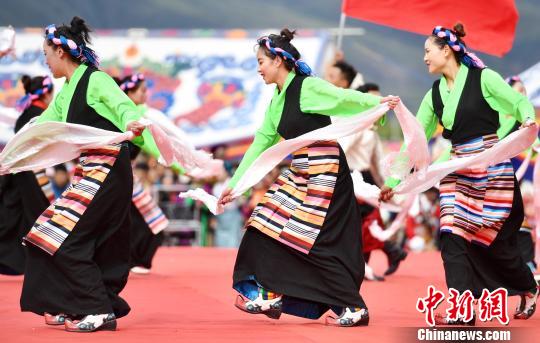 圖為文藝演出中的西藏傳統(tǒng)歌舞表演。 趙朗 攝