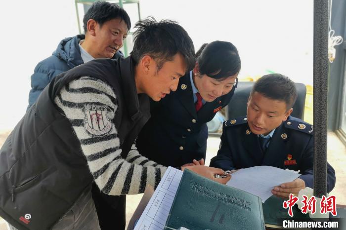 圖為那曲市色尼區(qū)稅務(wù)工作人員到當(dāng)?shù)剞r(nóng)牧企業(yè)了解企業(yè)信息。國家稅務(wù)總局那曲市色尼區(qū)稅務(wù)局 供圖