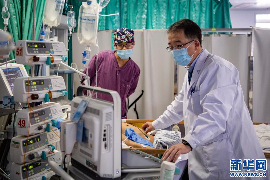 2月23日,北京援藏醫(yī)生王小亭(右)在西藏自治區(qū)人民醫(yī)院的重癥病房為危重病人做重癥超聲評(píng)估。新華社記者 孫非 攝