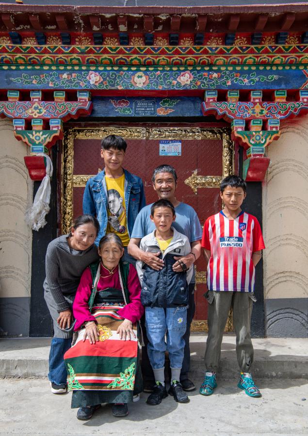 來自雙湖縣措折強瑪鄉(xiāng)71歲的羅達(dá)瓦(后右二)和家人在位于山南市貢嘎縣森布日搬遷安置點的新家門前合影(2020年8月24日攝)。森布日搬遷安置點是西藏極高海拔地區(qū)居民生態(tài)搬遷安置點之一,2019年底,來自那曲市安多縣色務(wù)鄉(xiāng),雙湖縣嘎措鄉(xiāng)、雅曲鄉(xiāng)、措折強瑪鄉(xiāng)的共計957戶、4058名群眾搬遷至此。新華社記者 孫非 攝