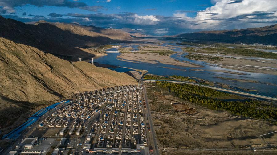 位于山南市貢嘎縣的森布日搬遷安置點(2020年9月24日攝,無人機照片)。這是西藏極高海拔地區(qū)居民生態(tài)搬遷安置點之一,2019年底,來自那曲市安多縣色務(wù)鄉(xiāng),雙湖縣嘎措鄉(xiāng)、雅曲鄉(xiāng)、措折強瑪鄉(xiāng)的共計957戶、4058名群眾搬遷至此。新華社記者 孫非 攝