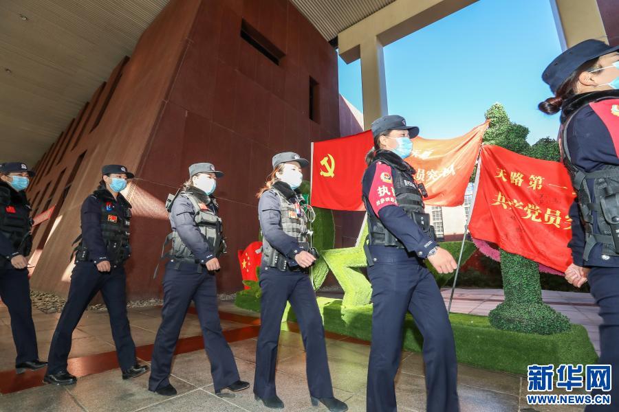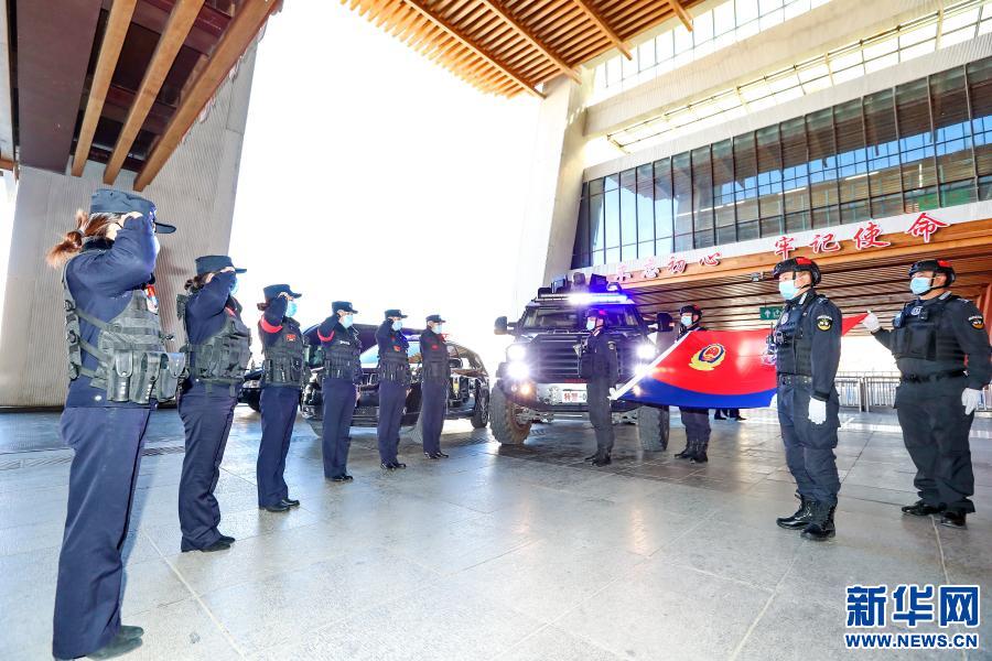1月10日,中國人民警察節(jié)當(dāng)日,拉薩火車站派出所“女子格?;ā本M在巡邏。新華社發(fā)(胡安鵬、黃飛攝影報道)