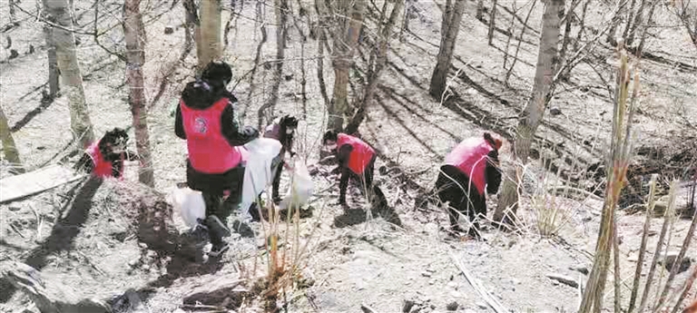 在春節(jié)、藏歷新年來臨之際,為深入貫徹落實“拉薩市文明城市創(chuàng)建”工作精神,2月5日,由拉薩市婦聯(lián)黨組書記帶隊,帶領(lǐng)8名黨員干部職工深入達孜區(qū)唐嘎鄉(xiāng)窮達村與市婦聯(lián)4名駐村工作隊員聯(lián)合開展了“助力鄉(xiāng)村振興、從我做起從身邊做起”為主題的巾幗志愿服務(wù)活動。 活動中,市婦聯(lián)巾幗志愿服務(wù)隊成員投入到保護生態(tài)環(huán)境、清理白色垃圾、踐行鄉(xiāng)村振興行動當(dāng)中。黨員干部職工和駐村點黨員干部職工兩人一組,手持裝垃圾的麻袋,每個人在林地中白色垃圾最多、最臟的角落清理垃圾,為整個林地的生態(tài)保護和環(huán)境衛(wèi)生作出了應(yīng)有貢獻,更在引領(lǐng)基層廣大群眾深入踐行文明城市創(chuàng)建、保護生態(tài)環(huán)境、整治環(huán)境衛(wèi)生等方面充分發(fā)揮了黨員的先鋒模范帶頭作用。