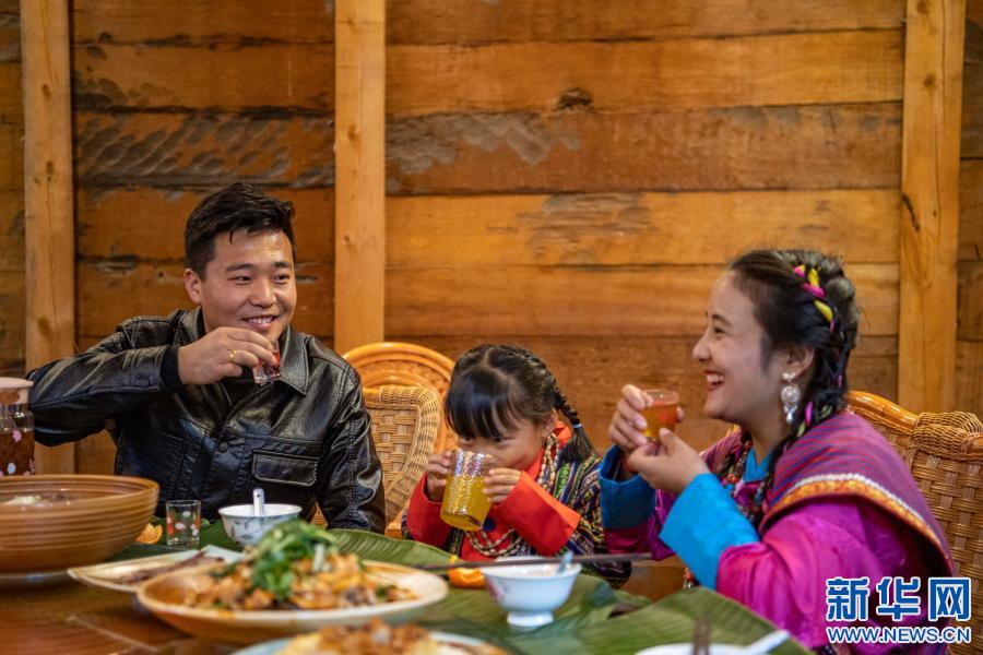 張淳煥一家三口在親戚開的農家樂里舉杯共慶新年(2月11日攝)。新華社記者 孫非 攝