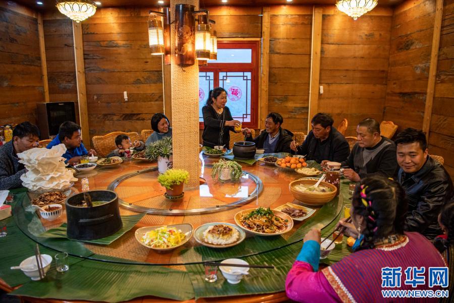 張淳煥一家在親戚開的農家樂里吃年夜飯(2月11日攝)。新華社記者 孫非 攝