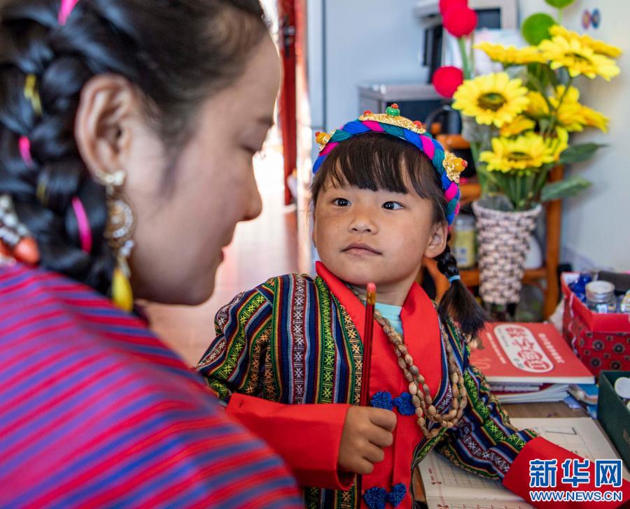 在位于西藏林芝市墨脫縣的家中,扎西玉珍指導女兒寫作業(yè)(2月11日攝)。新華社記者 孫非 攝