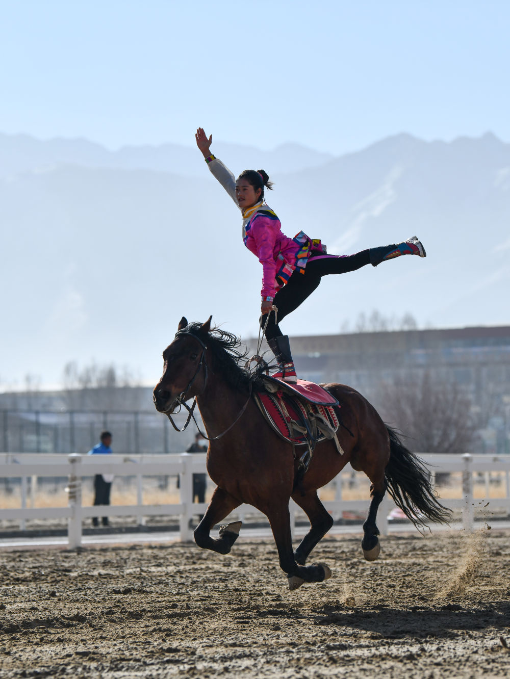 2月14日,為慶祝藏歷新年,西藏自治區(qū)體育局組織自治區(qū)馬術(shù)隊在拉薩北郊賽馬場舉行馬術(shù)表演。因疫情防控需要,這次表演被搬到“線上”,通過網(wǎng)絡(luò)直播發(fā)布。