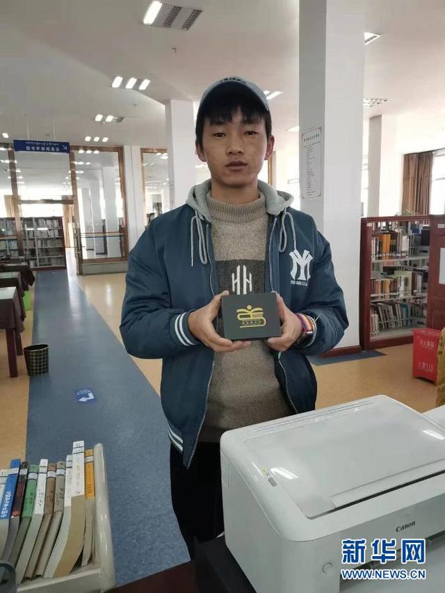 讀者在西藏自治區(qū)圖書館參加藏漢雙語閱讀平臺(tái)相關(guān)活動(dòng)后,展示內(nèi)存有電子書、非物質(zhì)文化遺產(chǎn)傳承人紀(jì)錄片等內(nèi)容的“數(shù)字資源寶”優(yōu)盤獎(jiǎng)品(資料照片)。新華社發(fā)(西藏自治區(qū)圖書館供圖)