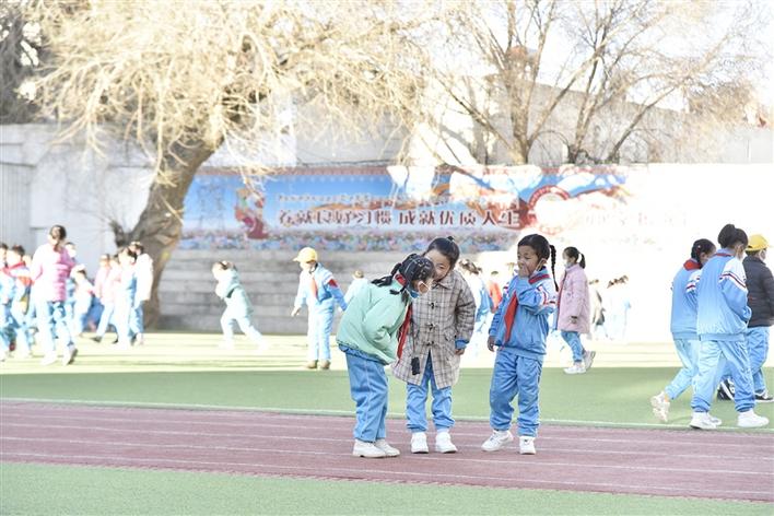 3月2日早上8時(shí)許,拉薩市第一小學(xué)門(mén)口熱鬧非凡。孩子們?cè)诩议L(zhǎng)的護(hù)送下背著書(shū)包、系著紅領(lǐng)巾,經(jīng)過(guò)體溫測(cè)量、消毒等疫情防控工作后,興奮地邁入校門(mén)。進(jìn)入校園后,爭(zhēng)著跟每一位老師問(wèn)好,迫不及待地和許久不見(jiàn)的同學(xué)分享愉快的假期生活?!伴_(kāi)學(xué)了,我又能和同學(xué)們一起上課、玩耍,還能見(jiàn)到喜歡的老師,心里特別高興?!弊楷斃放d奮地說(shuō),“假期我們?nèi)叶既コ啥加瓮媪?,我給班里的小伙伴們都帶了禮物,希望他們會(huì)喜歡。”