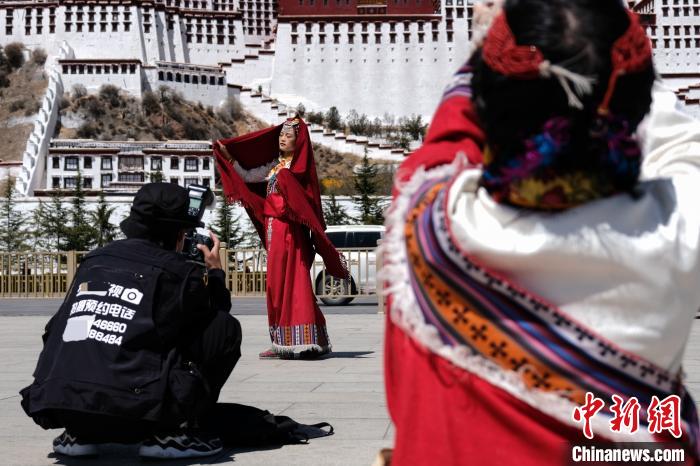 圖為3月25日,游客在拉薩布達拉宮觀景臺拍照留念。江飛波 攝
