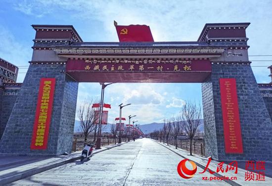 克松社區(qū),距拉薩兩小時(shí)車程。遠(yuǎn)遠(yuǎn)地,人們就能看見(jiàn)村口的“西藏民主改革第一村·克松”幾個(gè)大字在陽(yáng)光下熠熠生輝。