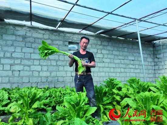 就在他們家大棚門口,記者看到洛桑頓珠正忙著裝運(yùn),后備廂塞得滿滿當(dāng)當(dāng)?!八麄?nèi)撕?,我們家牛吃的都是新鮮菜?!甭迳nD珠操著濃重的鄉(xiāng)音說(shuō)。
