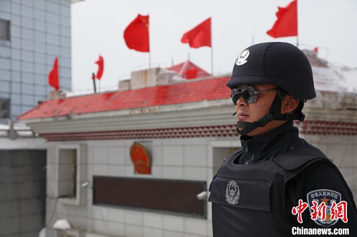 連日來(lái),執(zhí)勤隊(duì)像往常一樣開(kāi)展巡邏。民警楊帆是此次乃堆拉執(zhí)勤任務(wù)的帶隊(duì)干部,組織民警開(kāi)展巡邏是他每天必須完成的任務(wù)。大家穿戴好單警裝備,楊帆格外對(duì)新警阿旺邊巴叮囑高原巡邏注意事項(xiàng)。
