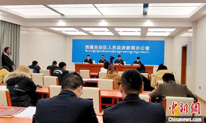 圖為西藏公安機關(guān)相關(guān)負責(zé)人發(fā)布三年以來的掃黑除惡專項斗爭情況。貢桑拉姆 攝