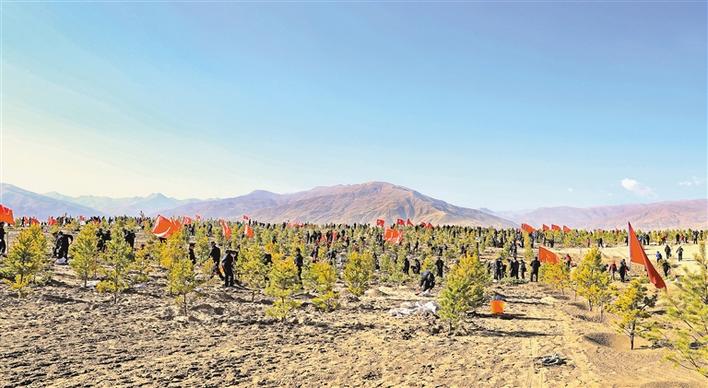 圖為山南市干部職工在雅江河谷開展植樹造林活動(dòng)。