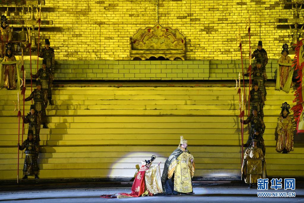 4月10日,演員在大型實(shí)景劇《文成公主》中表演。新華社 孫瑞博 攝