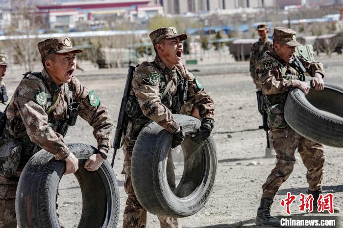 圖為西藏軍區(qū)某旅新兵進行舉輪胎訓(xùn)練。西藏軍區(qū)某旅 攝