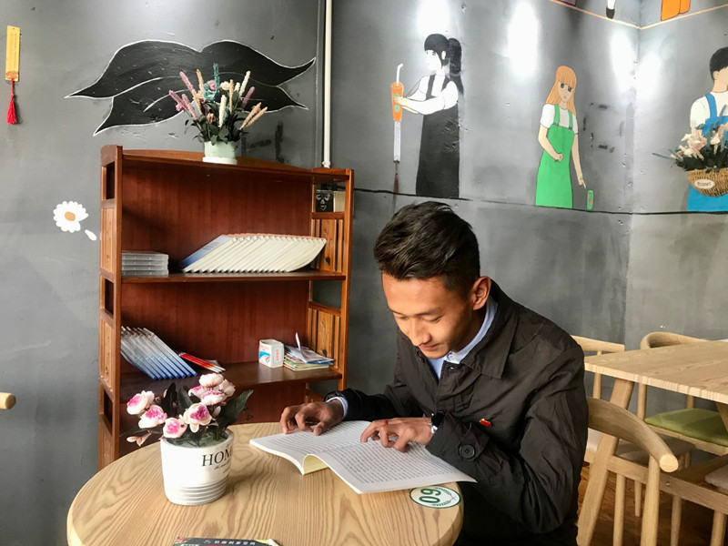 圖為創(chuàng)業(yè)者旺久利用閑暇時(shí)間看書(shū)。尼瑪次仁 攝