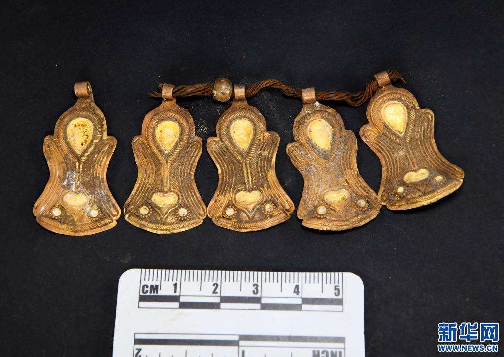 西藏札達桑達隆果墓地出土的金掛飾。(資料照片)新華社發(fā)