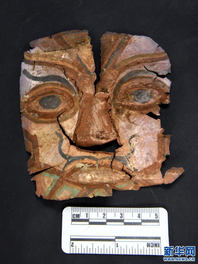 西藏札達桑達隆果墓地出土的銀質(zhì)鎏金面飾。(資料照片)新華社發(fā)