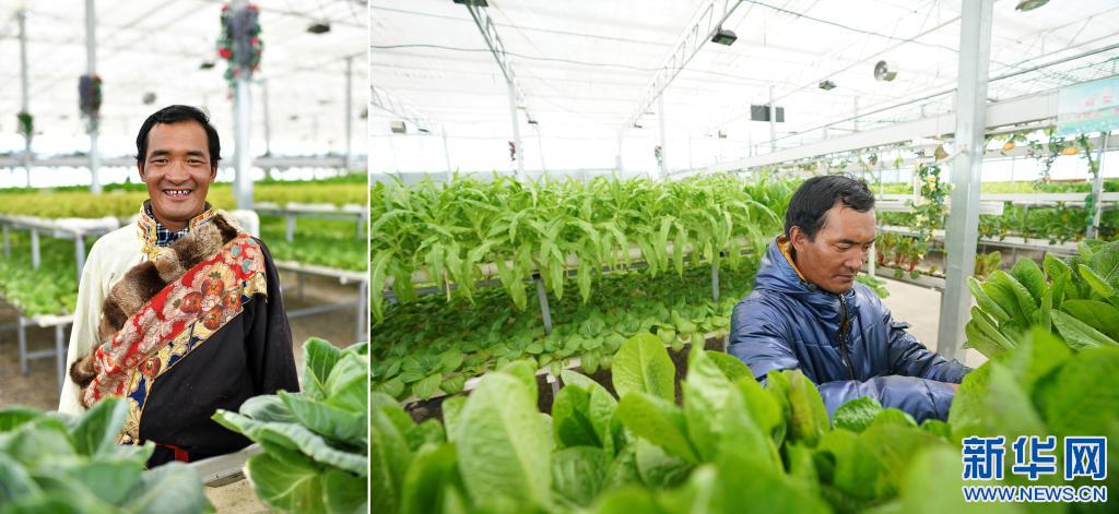 拼版照片:左圖為西藏阿里地區(qū)噶爾縣左左鄉(xiāng)上左左村村民宿加在噶爾縣生態(tài)農業(yè)產業(yè)園;右圖為宿加在噶爾縣生態(tài)農業(yè)產業(yè)園查看蔬菜生長情況(2020年7月25日攝)。新華社記者詹彥 攝