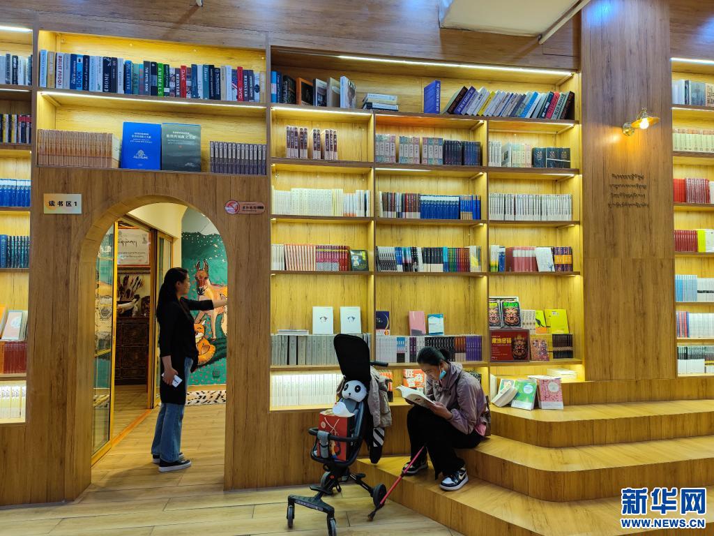“閱讀與人生相伴,書香與夢想齊飛”。走在拉薩市宗角祿康公園北側,這副對聯(lián)映入眼簾。走進書屋,只見各式書籍整齊排列,桌子上擺放著報紙和雜志。61歲的貢嘎挑選了一本藏語讀物,坐在靠門的位置,享受自己的閑暇時光。
