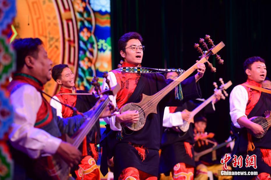 6月12日,2021年“文化和自然遺產(chǎn)日”西藏非遺展演展示系列活動(dòng)在拉薩舉行?;顒?dòng)現(xiàn)場(chǎng)融入了文藝演出、非遺展演、非遺產(chǎn)品展銷(xiāo)等內(nèi)容,市民游客可親身體驗(yàn)非遺產(chǎn)品的制作過(guò)程。圖為在西藏自治區(qū)群眾藝術(shù)館演出的扎念彈唱《普伊桑林貢巴》?!?中新社記者 貢嘎來(lái)松 攝