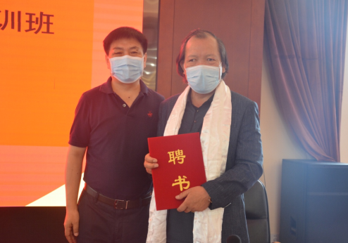 北京藏醫(yī)院院長(zhǎng)仲格嘉(左)向明珠(右)頒發(fā)聘書,聘請(qǐng)明珠為北京藏醫(yī)院藏藥浴專題培訓(xùn)班授課老師。