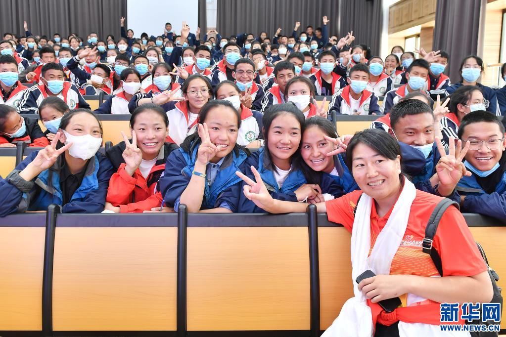 當(dāng)日,高敏攜西藏和平解放以來首個(gè)競技體育世界冠軍、摔跤運(yùn)動(dòng)員西洛卓瑪和成功登頂七大洲最高峰并徒步到達(dá)南北極點(diǎn)的西藏登山運(yùn)動(dòng)員德慶歐珠走進(jìn)拉薩市阿里高級中學(xué)。該校在校學(xué)生均來自距拉薩超過1000公里的阿里地區(qū)。由于當(dāng)?shù)貧夂驐l件惡劣,交通不便,學(xué)校遷往拉薩,讓許多高海拔偏遠(yuǎn)地區(qū)的學(xué)生享受到了更優(yōu)質(zhì)的教育條件。