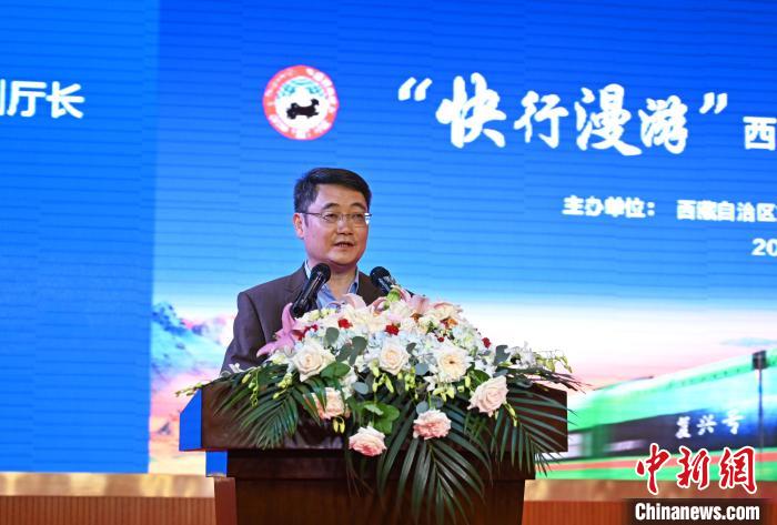 圖為西藏自治區(qū)旅發(fā)廳副廳長(zhǎng)姬越致辭。趙朗 攝