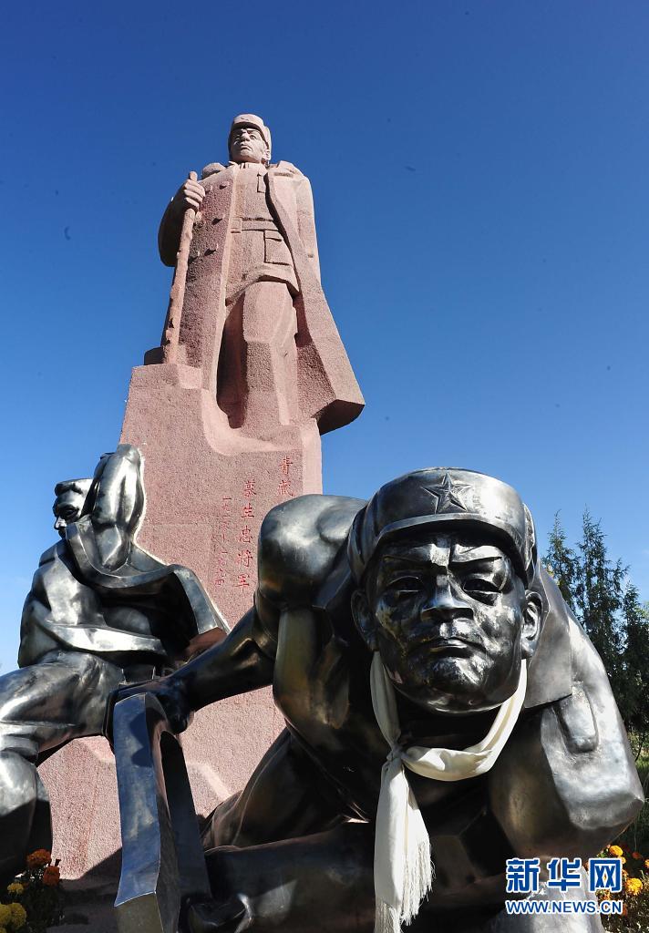 矗立在青海省格爾木市將軍樓公園內的慕生忠雕像(2014年9月23日攝)。新華社記者 王頌 攝