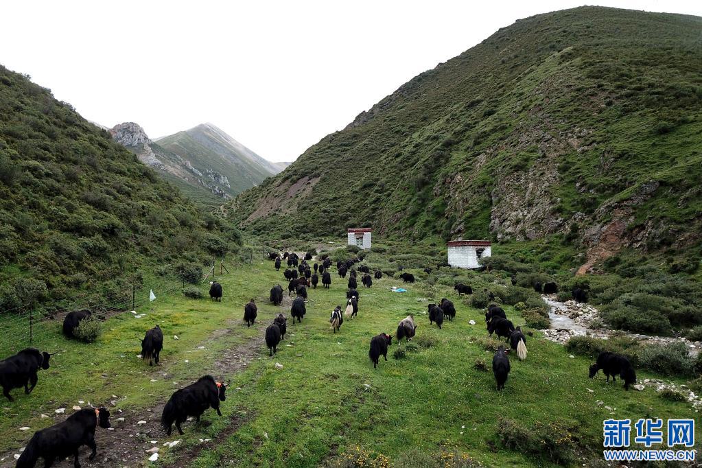 西藏娘亞牦牛養(yǎng)殖產(chǎn)業(yè)發(fā)展有限責(zé)任公司的牦牛走向牧場(chǎng)(7月28日攝,無(wú)人機(jī)照片)。新華社記者 李鑫 攝