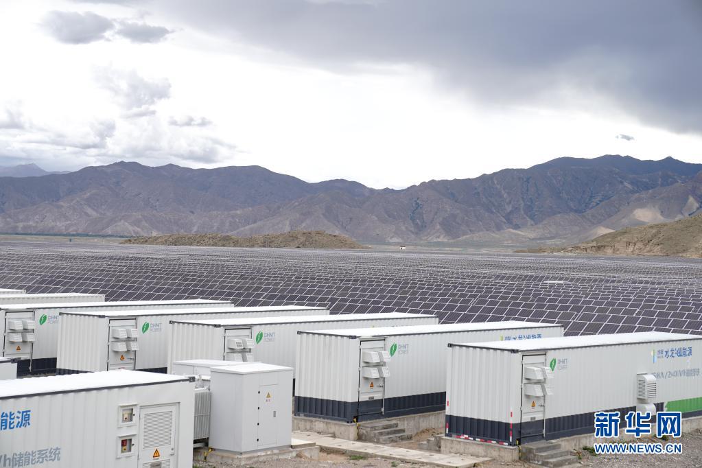 日喀則市江當(dāng)現(xiàn)代生態(tài)產(chǎn)業(yè)示范園內(nèi)的“光伏+儲(chǔ)能”電站(7月15日攝)。新華社記者 劉洪明 攝