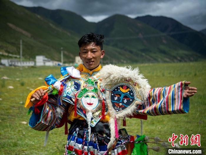跳直孔普堆巴宣舞的28歲藏族小伙尼瑪。劉忠俊 攝