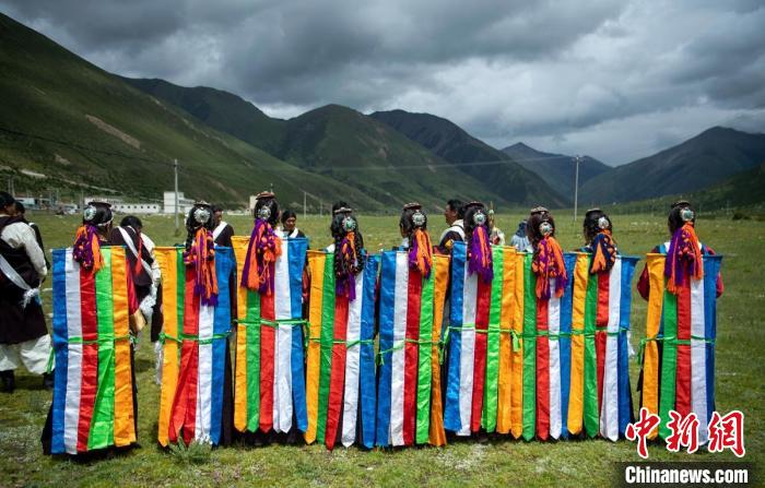 草原上正在展示直孔普堆巴宣舞。劉忠俊 攝
