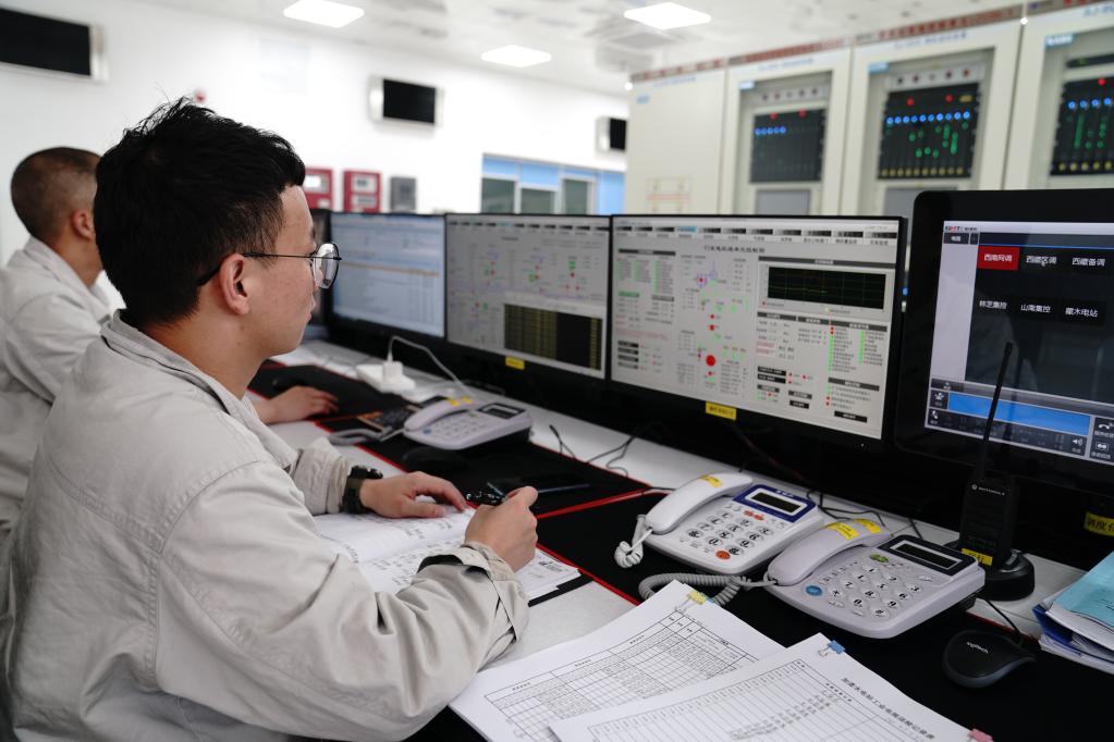 2021年7月11日,工作人員在西藏加查水電廠調(diào)度室值班。新華社記者劉洪明 攝