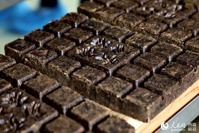 茶場生產(chǎn)的磚茶。人民網(wǎng) 次仁羅布攝