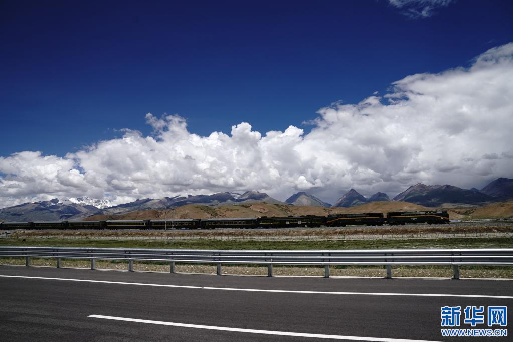 列車(chē)行駛在青藏鐵路拉薩市當(dāng)雄縣境內(nèi)(2021年6月28日攝)。新華社記者 劉洪明 攝