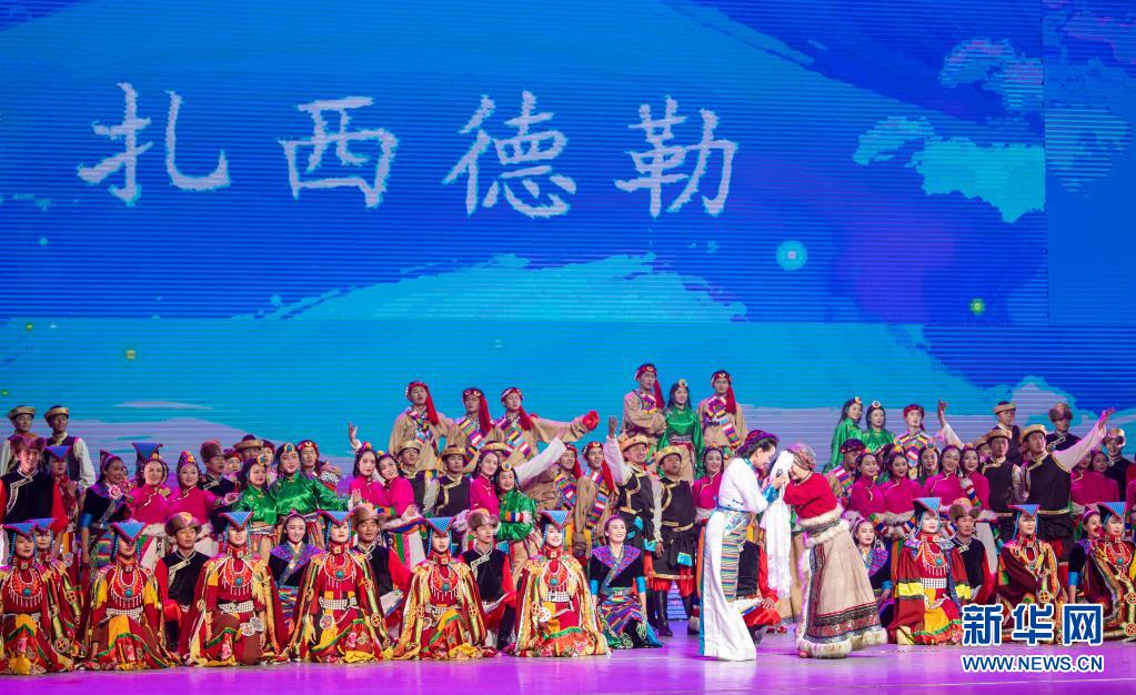 8月19日,慶祝西藏和平解放70周年文藝演出《西藏兒女心向黨》在拉薩西藏人民會堂精彩上演。新華社記者 黃敬文 攝