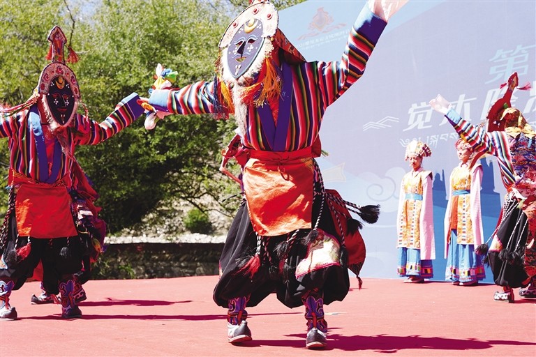 啟動(dòng)儀式結(jié)束后,還舉辦了第六屆覺木隆派藏戲文化旅游節(jié),邀請(qǐng)堆龍德慶區(qū)10支覺木隆藏戲表演隊(duì)表演特色劇目并為他們授牌。堆龍德慶區(qū)委常委、宣傳部部長楊麗表示,本屆藏戲文化旅游節(jié),廣發(fā)“藏戲達(dá)人召集令”,邀請(qǐng)各派系、各唱腔達(dá)人表演特色劇目選段、共話藏戲,就是希望通過共建文化陣地、共享文化資源、共辦文化活動(dòng)的形式,凝聚合力,充分彰顯藏戲文化魅力,弘揚(yáng)優(yōu)秀傳統(tǒng)民族文化,保護(hù)和傳承藏戲文化遺產(chǎn),推動(dòng)藏戲文化深度發(fā)展?!昂軜s幸能參加此次活動(dòng),那嘎藏戲團(tuán)于1978年成立,那年我13歲,藏戲團(tuán)剛成立我就加入了,因?yàn)槲沂窒矚g藏戲,希望自己能將這種傳統(tǒng)藝術(shù)傳承下去?!苯衲?6歲的安多說。