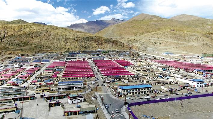 在這座現(xiàn)代化的小區(qū)里,一排排黃色的藏式民居整齊劃一,迎風(fēng)招展的五星紅旗格外醒目,小區(qū)周邊學(xué)校、醫(yī)院、農(nóng)貿(mào)市場(chǎng)等配套設(shè)施一應(yīng)俱全。沐浴著和煦的陽光,孩子們?cè)谙镒永锉寂苕音[,老人們圍攏在一起拉家常。