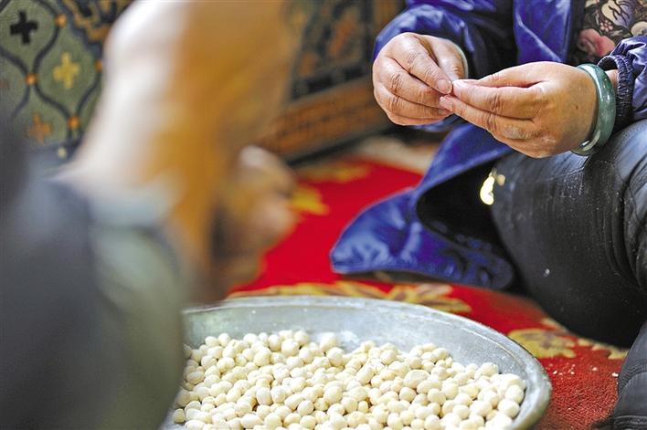 家住拉薩市城關(guān)區(qū)嘎瑪貢桑社區(qū)的達(dá)瓦頓珠一家正不亦樂乎地做“古突”。丹增群培 唐斌 攝