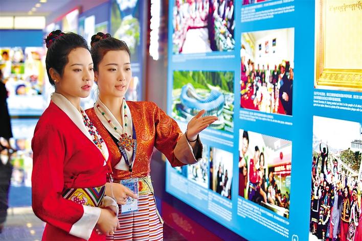 一幅幅精美絕倫的照片、一幀幀生動直觀的視頻畫面、一個個獨特壯觀的實物模型、一次次活潑有趣的互動展示,全面、立體、生動地向中外嘉賓展示了西藏和平解放70年來經(jīng)濟社會發(fā)展的歷史性成就,展示了中國共產(chǎn)黨團結(jié)帶領(lǐng)西藏各族人民創(chuàng)造了彪炳千秋、利澤萬代、亙古未有的歷史功績。