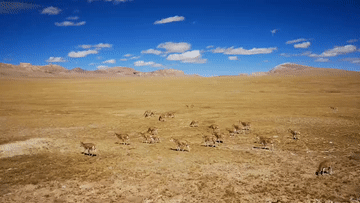 羌塘草原,平均海拔超過4700米。由于自然條件惡劣,這里被稱為“人類生命的禁區(qū)”,但卻是野生動(dòng)物的樂園。記者穿過羌塘草原,路遇一群藏羚羊。新華社記者 董琳娜 攝