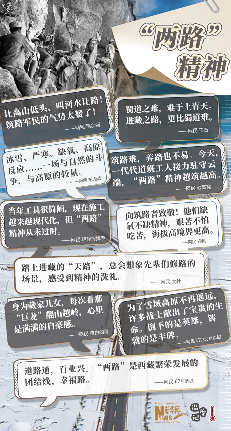 “天路”巍峨,精神閃光。當(dāng)雪域高原換了人間,新一代建設(shè)者正接過接力棒,在新時代續(xù)寫著新的傳奇?!敖裉?,一代代道班工人接力駐守云端,‘兩路’精神越筑越高”,正如網(wǎng)民所說,無論過去、現(xiàn)在和將來,“兩路”精神都是西藏各族人民建設(shè)幸福家園的力量源泉和精神動力,也必將激勵中華兒女為了更加美好的明天繼續(xù)奮斗、前行。(文字:馬若虎 海報(bào)設(shè)計(jì):王曄)