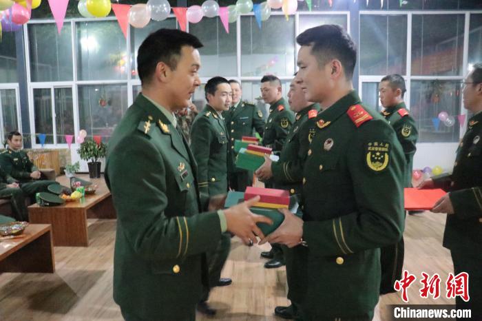 圖為武警第二機動總隊某支隊官兵向老兵贈送紀(jì)念品。李貴華 攝