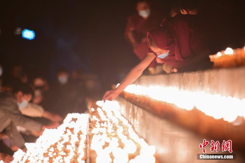 12月29日,僧眾在拉薩色拉寺點(diǎn)燃酥油燈。 中新社記者 貢嘎來松 攝