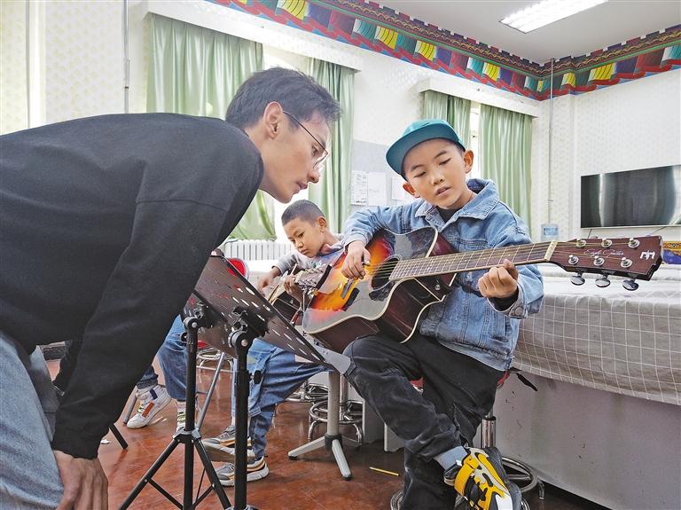 每到周末和寒假,音樂室里飄蕩著悠揚(yáng)的扎念、二胡、吉他和揚(yáng)琴聲;舞蹈空間、美術(shù)空間、多功能教室內(nèi),孩子們跳舞、畫畫、練藏文書法、學(xué)習(xí)英語;活動(dòng)場(chǎng)上,孩子們踢足球、打籃球?!霸诨顒?dòng)中心里,不僅能跟大家一起玩,還能學(xué)到不少東西,我很喜歡在這里學(xué)習(xí)?!睂W(xué)生宗尕吉高興地對(duì)記者說?;顒?dòng)中心的各種特色活動(dòng),充分滿足了孩子的興趣愛好,讓他們能夠張揚(yáng)個(gè)性、快樂成長、培養(yǎng)特長、多元發(fā)展。