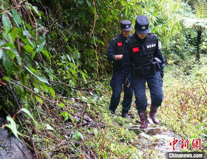 叢林里充滿了未知和危險,少有人涉足其中,但這卻是戍邊民警日常巡邏之地。26日,中新社記者隨背崩邊境派出所民警一道,踏上了原始叢林中的巡邏路。