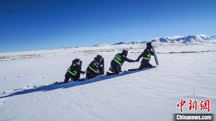 又經(jīng)過2個(gè)多小時(shí)的艱難跋涉,巡邏隊(duì)終于抵達(dá)目的地點(diǎn)位??辈?、鏟雪、描紅……一個(gè)環(huán)節(jié)也不能出錯(cuò),界碑就是生命,就是戍邊人的信仰。